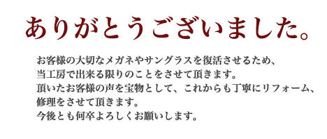 又、修理の際にはメガネを含めご相談させて頂きます。